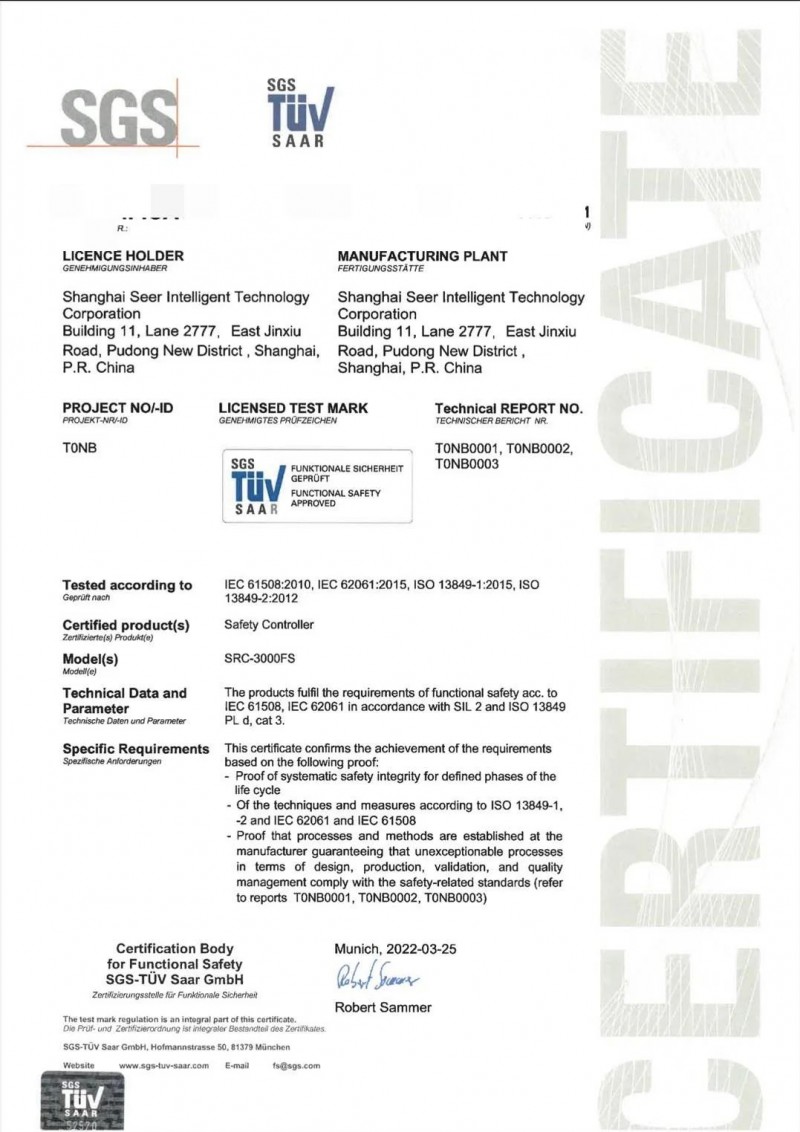 通過 SGS TUV SAAR 功能安全認證!仙工智能全球首款安全型 AMR 控制器