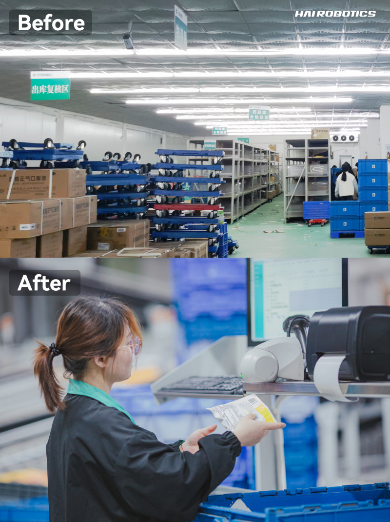 此外,傳統(tǒng)的人工倉庫里,貨架不能太高,否則人手難以拿到,但這就造成了庫容量低的問題。在中智的舊人工倉里,超過5萬件貨品就會產(chǎn)生爆倉的現(xiàn)象。得知海柔創(chuàng)新開創(chuàng)了箱式倉儲機(jī)器人的品類并處于行業(yè)龍頭地位,且在鞋服行業(yè)有多個成功的落地項目,中智決定攜手海柔創(chuàng)新ACR進(jìn)行倉儲自動化升級,在提升存儲密度和揀選準(zhǔn)確率、提高人效、減輕勞動強(qiáng)度等方面進(jìn)行優(yōu)化。