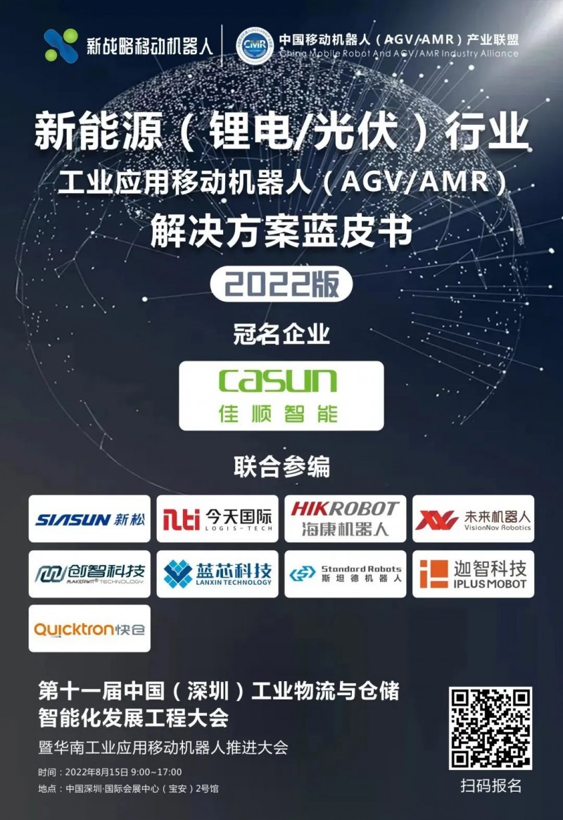 8月15日,由新松參編的《新能源行業(yè)用移動機器人(AGV/AMR)解決方案藍(lán)皮書(2022版)》也將在“中國(深圳)工業(yè)物流與倉儲智能化發(fā)展工程大會”發(fā)布,敬請期待!