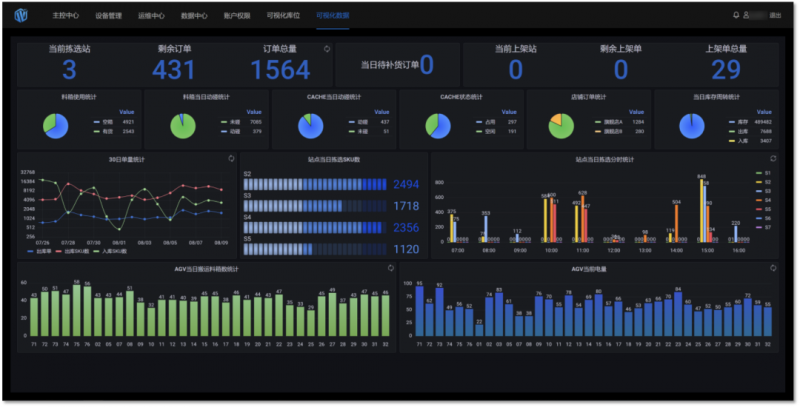 任務狀態(tài)可視化、設備運行狀態(tài)可視化、庫位使用情況可視化。