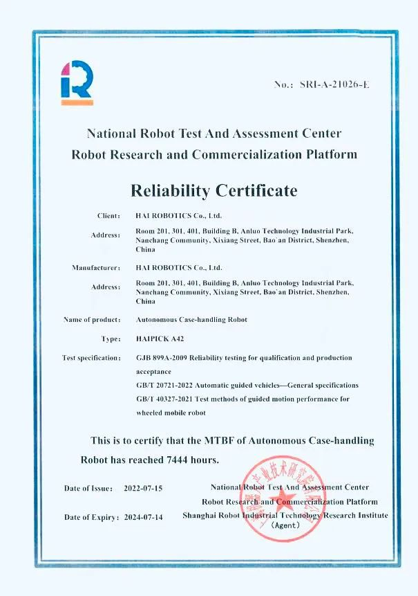 該項(xiàng)認(rèn)證客觀體現(xiàn)了海柔創(chuàng)新的產(chǎn)品領(lǐng)先力,也為客戶選擇和使用海柔創(chuàng)新ACR系統(tǒng),提供了強(qiáng)有力的質(zhì)量支撐和信心保證。