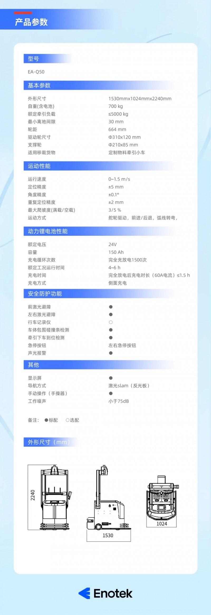多重安全防護,激光/紅外防撞,載貨檢測,急停按鈕,聲音告警等多安全防護;