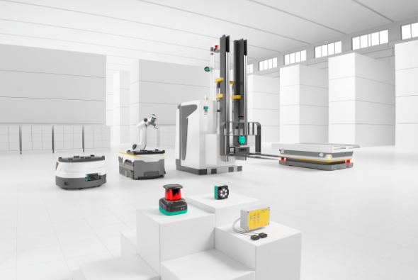 易福門O3D 智能傳感器可幫助AGV更加靈活高效識別棧板,并高效防撞。