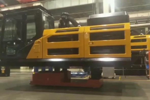 大挖工廠使用國自20噸重載AGV+30噸RGV,串聯(lián)起產(chǎn)線裝配工位,實現(xiàn)上線、下線全程智能化調(diào)度。