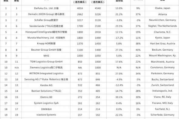 全球20大物流系統(tǒng)集成商2021年?duì)I收一覽