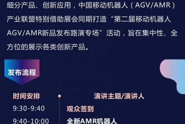 - 【兩天三場(chǎng)活動(dòng)】上海CeMAT物流展AGV/AMR會(huì)議公告 - 10月27日 第四屆中國(guó)國(guó)際移動(dòng)機(jī)器人(AGV/AMR)產(chǎn)業(yè)發(fā)展大會(huì) 10月28日 第二屆移動(dòng)機(jī)器人(AGV/AMR)新品發(fā)布路演專場(chǎng) 10月2... - 關(guān)鍵字標(biāo)簽: 迦智科技 機(jī)器人 中國(guó)移動(dòng)機(jī)器人  2021-09-12 2021-09-12