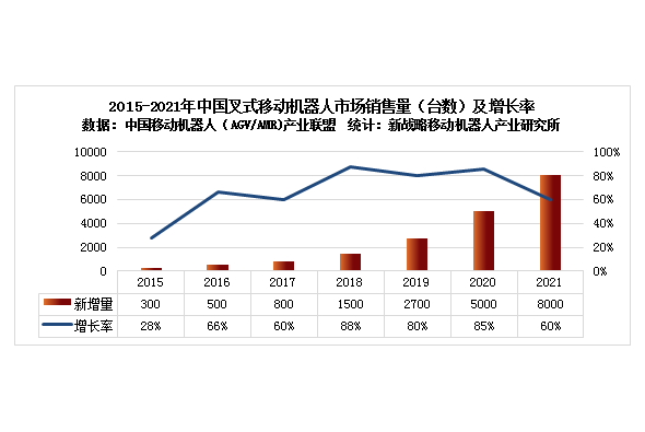 2021年中國市場企業整體銷售AGV/AMR72000臺,市場銷售額達到126億元。