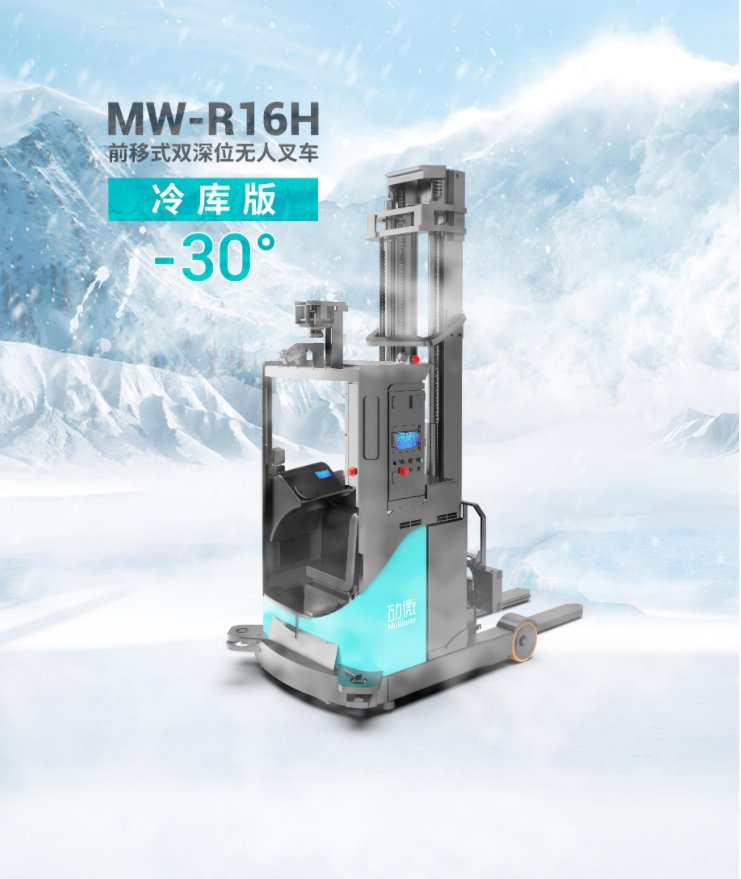 以解決行業痛點為導向,深耕行業,持續創新,勱微機器人推出冷庫版前移式無人叉車MW-R16H,除能解決在冷庫等極端環境復雜場景外,在高位貨架作業中,可提升30%以上倉儲庫容率,實現有限空間內的高密度存儲。