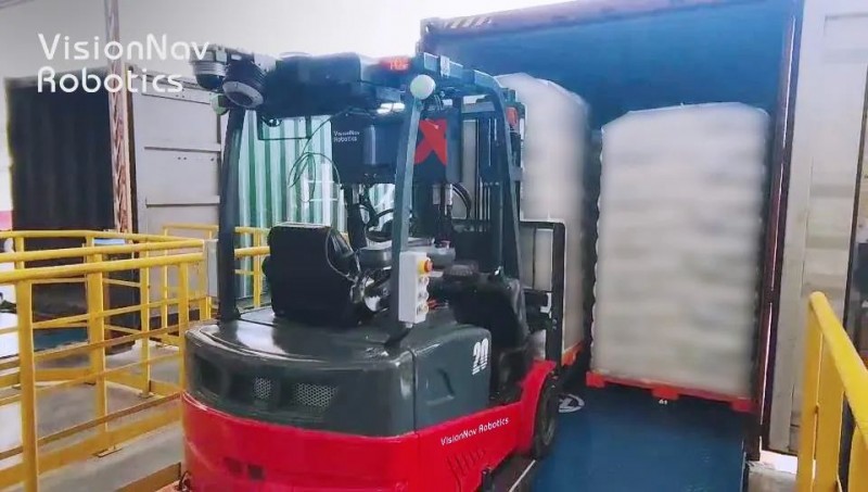 在某化工企業(yè)實(shí)際應(yīng)用時(shí),無(wú)人叉車(chē)載貨進(jìn)入狹長(zhǎng)的車(chē)廂后,基于3D感知激光技術(shù),在寬度為2.35m的車(chē)廂,貨物左右間隙小于30mm的環(huán)境內(nèi),完成兩列貨物18托的精準(zhǔn)擺放,成功實(shí)現(xiàn)月臺(tái)自動(dòng)裝貨,也是國(guó)內(nèi)首個(gè)成功實(shí)現(xiàn)廂式貨車(chē)無(wú)人叉車(chē)裝箱案例。