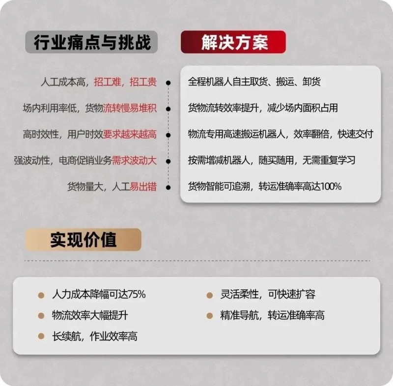 截至目前,雙方合作已經(jīng)從湖州擴大到無錫、武漢、南通、廈門等多個城市。一批又一批的搬馬機器人助力跨越速運集團智能化物流轉(zhuǎn)型,實現(xiàn)整體物流效率的再跨越,并且峰值期間可實現(xiàn)51%-75%的人工成本降幅。