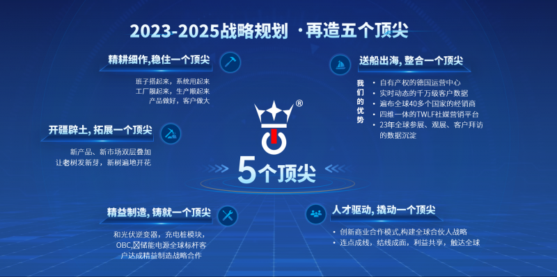 在全面落實(shí)2023-2025戰(zhàn)略規(guī)劃的具體布局上,黃詩達(dá)總經(jīng)理強(qiáng)調(diào)了人才、產(chǎn)品、市場、數(shù)據(jù)、資源五位一體的五驅(qū)聯(lián)動戰(zhàn)略,形成企業(yè)良好的可持續(xù)運(yùn)轉(zhuǎn)機(jī)制,共同驅(qū)動頂尖電源的穩(wěn)健可持續(xù)發(fā)展,實(shí)現(xiàn)五個頂尖目標(biāo)。