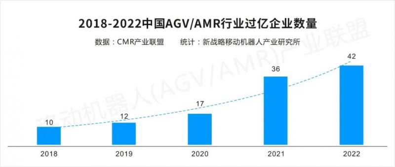 2022年度,中國市場AGV/AMR企業銷售額過億元的企業約42家,與2021年度的36家相比,新增了6家企業。