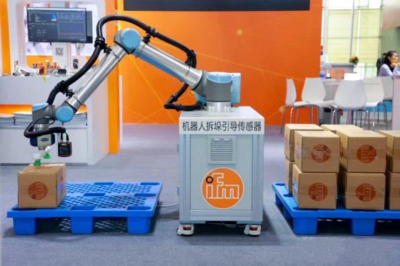ifm 3D ToF相機可檢測物體尺寸,并且精度非常高,在機器人自動處理拾放或分揀任務(wù)中實現(xiàn)精準定位,將相關(guān)信息發(fā)送給機器人,從而將包裹放置在正確的托盤上,高效完成任務(wù)。此項技術(shù)采用ifm子公司pmd的ToF光飛行技術(shù),也能夠支持機器人空間避障及AGV棧板識別定位作用,在視覺系統(tǒng)應(yīng)用中發(fā)掘更大潛能。