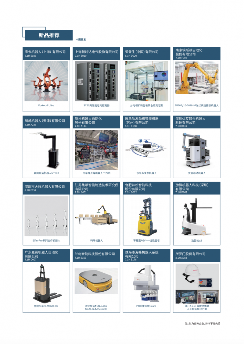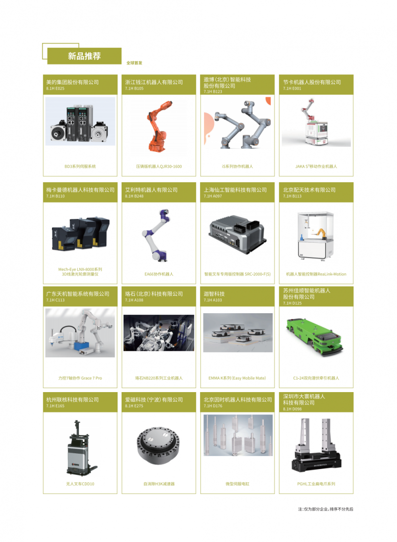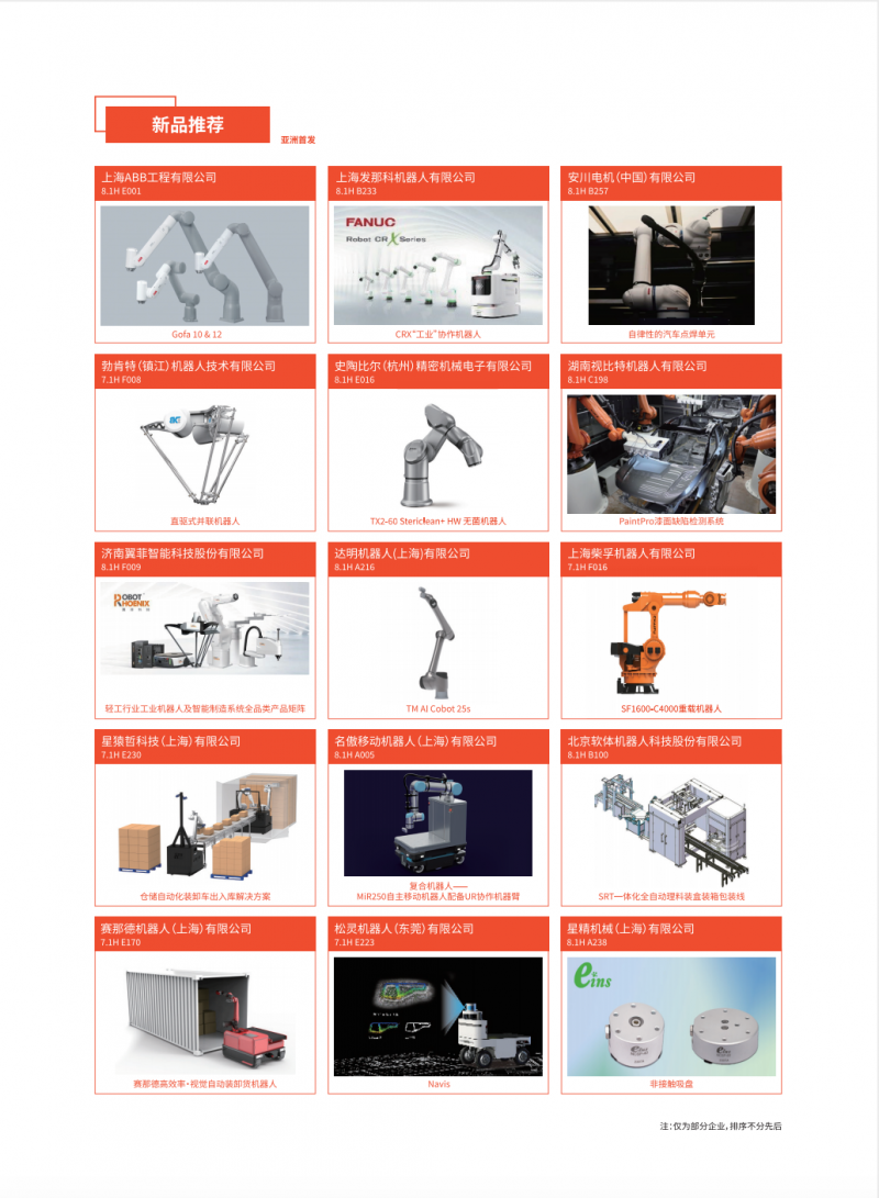 新品覆蓋了工業(yè)機器人本體、SCARA機器人、DELTA機器人、協(xié)作機器人、AGV/AMR、移動復合機器人、減速器控制器傳感器和伺服電機執(zhí)行器等核心零部件、軟件及系統(tǒng)集成應用等,彰顯最前沿的機器人技術,為新型工業(yè)化注入新動能。