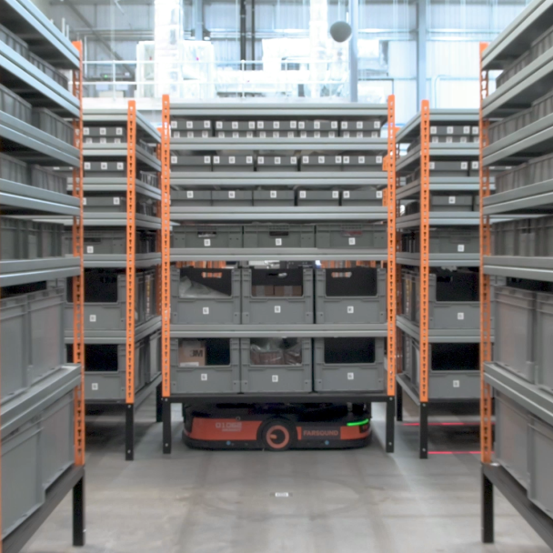 Farsound定制了多種貨架來滿足不同種類零部件的搬運(yùn)需求;同時(shí),海康機(jī)器人LMR可實(shí)現(xiàn)貨架的柔性適配。