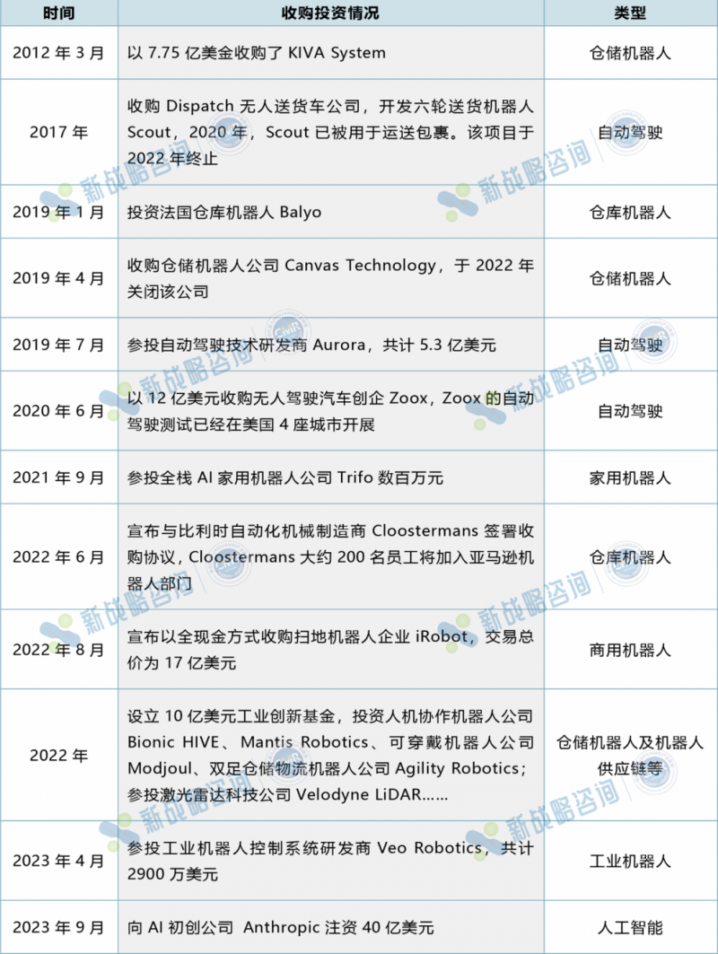 從2012年至今,在探索內部物流自動化的過程中,亞馬遜通過不斷的投資收購來擴大自己的機器人軍團,據統計,在收購和投資機器人、無人機及自動駕駛相關創業公司上,亞馬遜已累計斥資近百億美元。