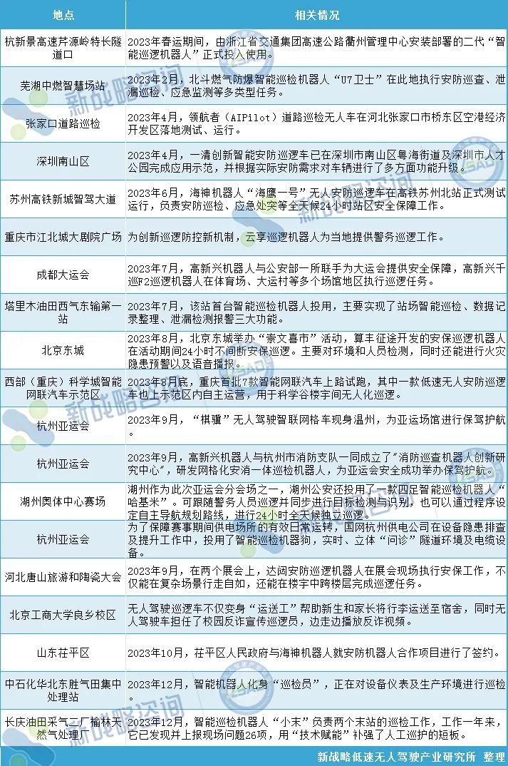 表格2:2023年國內部分安防巡檢機器人落地應用項目情況