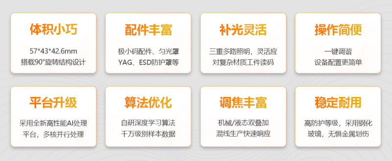2.高速讀碼 → 全新優(yōu)化照明系統(tǒng)+AI讀碼算法,滿足小曝光高節(jié)拍讀碼場景。