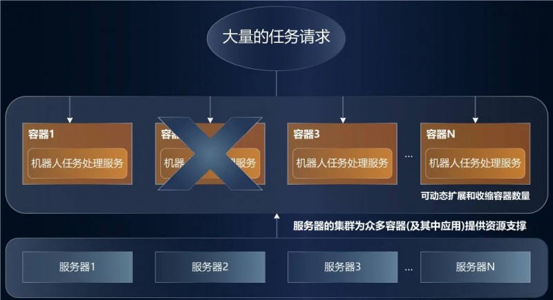 HikRobot HA高可用集群系統(tǒng)可將大量的任務請求分發(fā)到不同的容器上,同時,可以根據應用程序的資源需求動態(tài)分配容器數量。