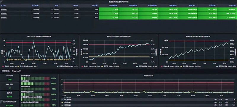 該運維管理平臺開放控制臺,可集群中的各臺服務器資源進行整合、實時的監(jiān)管,通過可視化圖表,全覆蓋各種資源指標,幫助快速巡檢整體情況。