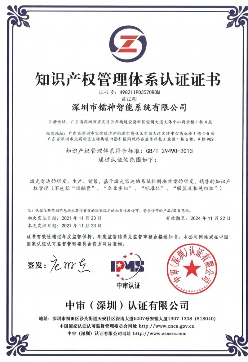 鐳神智能對(duì)技術(shù)專利的申請(qǐng)與保護(hù)持有極高的重視度。公司不僅成功取得了知識(shí)產(chǎn)權(quán)管理體系認(rèn)證,更憑借其卓越的表現(xiàn),榮獲廣東省知識(shí)產(chǎn)權(quán)示范企業(yè)的稱號(hào),同時(shí)被評(píng)為深圳市知識(shí)產(chǎn)權(quán)優(yōu)勢單位。這些榮譽(yù)充分體現(xiàn)了鐳神智能在知識(shí)產(chǎn)權(quán)保護(hù)方面的領(lǐng)先地位和不懈努力。