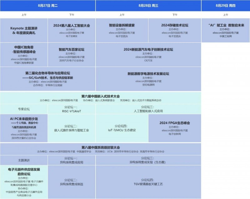 elexcon深圳國際電子展將于 2024年8月27-29日 在深圳會展中心(福田) 舉辦,圍繞嵌入式AI產(chǎn)業(yè),現(xiàn)場重要展商及同期重要活動已公布,活動亮點先睹為快!