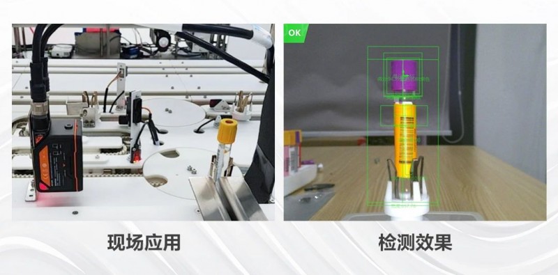 應(yīng)用亮點(diǎn):能夠穩(wěn)定檢測試管有無及試管帽顏色,同時(shí)進(jìn)行多個(gè)內(nèi)容的檢測,具有高識別率。