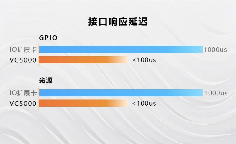 采用高速IO /光源接口,滿足高速視覺處理時(shí)序要求,精準(zhǔn)收發(fā)信號(hào),控制更高效,接口響應(yīng)速度可達(dá)100us以內(nèi)。