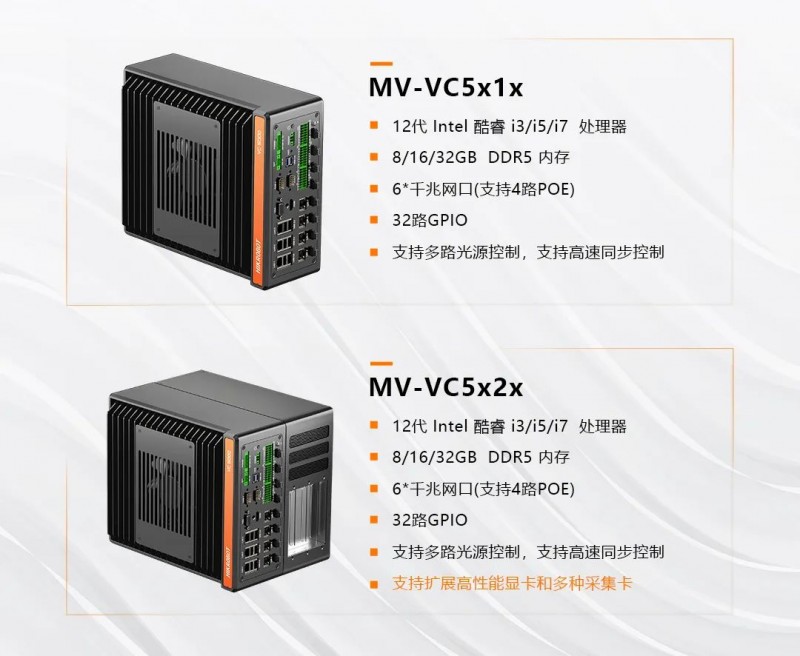 VC5000全系采用12代酷睿處理器,搭配DDR5內(nèi)存,為視覺檢測(cè)算法提供強(qiáng)大算力,整體性能提升近3倍,輕松應(yīng)對(duì)各類復(fù)雜任務(wù)。