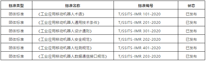 圖表:移動機器人產(chǎn)業(yè)聯(lián)盟制定的6項團體標準
