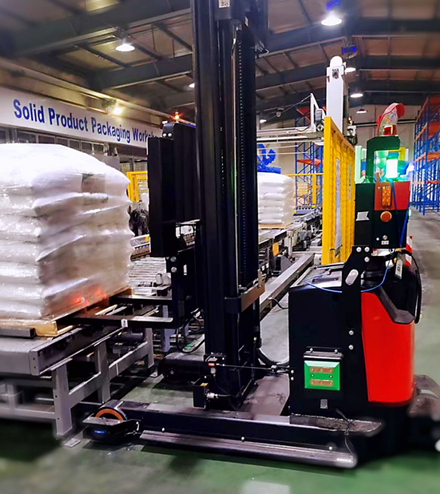 該項目客戶為韓國資本在中國的化工外企,杭叉智能通過整合機械臂、輸送線、穿梭車、打包機以及WMS等軟硬件,結(jié)合自身新款堆垛前移車進行項目規(guī)劃,充分發(fā)揮車輛小巧靈活,對于空間需求進一步縮小的優(yōu)勢,配以鋰電快充大容量的特點以及5G通訊技術(shù)的巨大優(yōu)勢,因地制宜,在較短的時間內(nèi)完成實施并將項目投入使用,完全替代了原先人工車的作業(yè)模式,達到了機器換人的目的,實現(xiàn)整體物流智能化。
