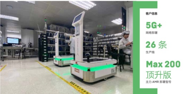 全球領(lǐng)先的某大型通信設(shè)備公司無線小基站智能工廠項目,迦智科技近百臺自然導(dǎo)航AMR,在5G技術(shù)低延時、高帶寬、高速率的傳輸特性加持下,實現(xiàn)了與用戶現(xiàn)場的MES、WMS以及第三方設(shè)備間的互聯(lián)互通,信息上傳下達,交互協(xié)同作業(yè)。