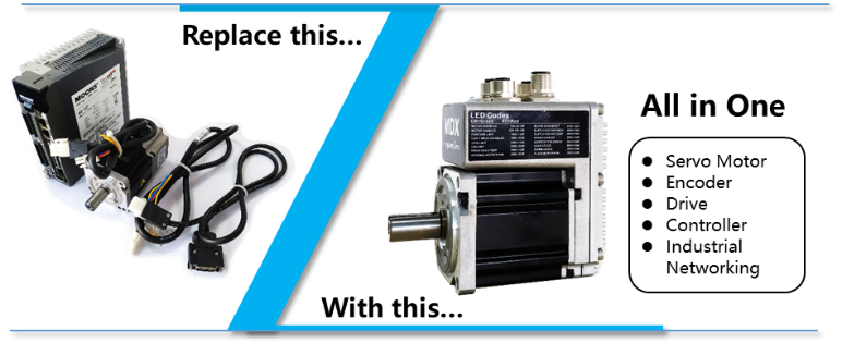 一體化設(shè)計(jì)使電機(jī)和驅(qū)動(dòng)器集成為一個(gè)整體,省去了傳統(tǒng)電機(jī)和驅(qū)動(dòng)器之間動(dòng)力和信號(hào)反饋的線束。不但接線工作量下降50%,而且使車輛內(nèi)部空間更充裕。MDX一經(jīng)推出就受到了AGV廠家的熱烈歡迎,不論是負(fù)責(zé)產(chǎn)品研發(fā)的設(shè)計(jì)人員還是負(fù)責(zé)現(xiàn)場(chǎng)安裝調(diào)試的應(yīng)用工程師無(wú)不拍手稱贊鳴志MDX這種人性化設(shè)計(jì)。MDX使用便捷,支持多種工業(yè)通訊協(xié)議,除了傳統(tǒng)的RS232/485協(xié)議,還支持CANopen, Modbus/TCP, Ethernet/IP等工業(yè)以太網(wǎng)通訊,使用數(shù)字信號(hào)取代了嘈雜的模擬信號(hào),抗干擾性好,系統(tǒng)擴(kuò)展性能更佳。2018,2019年MDX連續(xù)獲得MM《現(xiàn)代制造》和中國(guó)傳動(dòng)網(wǎng)頒布的年度創(chuàng)新產(chǎn)品大獎(jiǎng)。