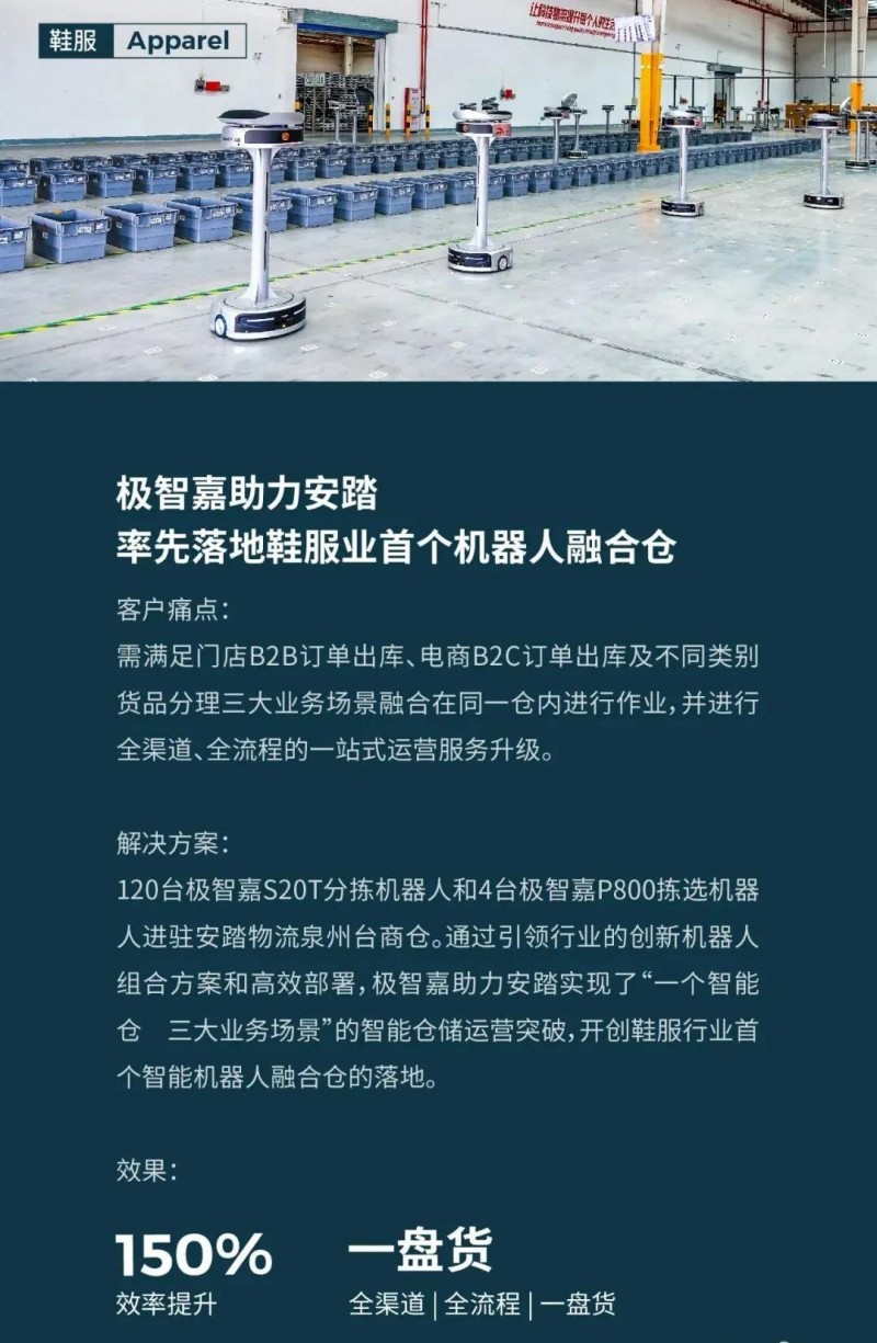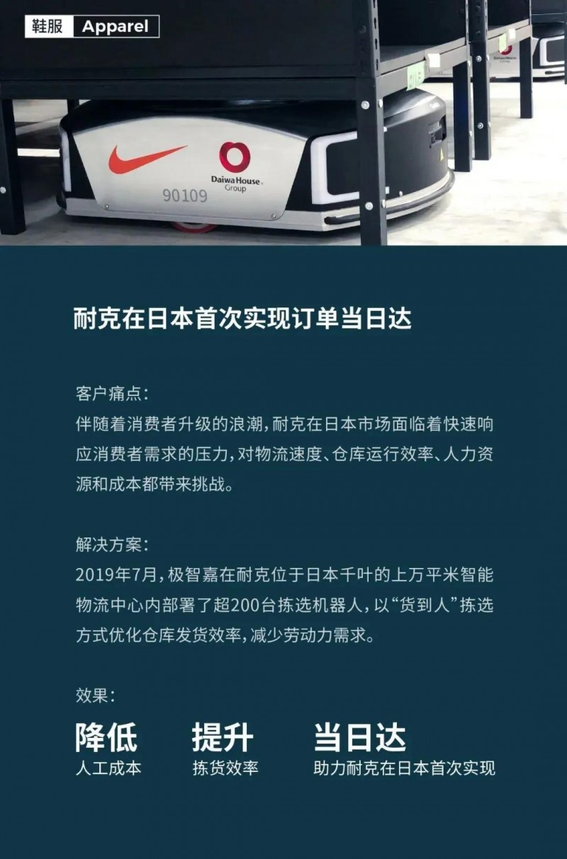 作為在鞋服行業(yè)擁有深厚行業(yè)積淀的智能物流方案專家,極智嘉已成功賦能耐克、安踏等行業(yè)龍頭品牌,實(shí)現(xiàn)物流智能升級,不斷助力客戶以數(shù)字化、精細(xì)化的倉配運(yùn)營管理,連接碎片化、多邊化場景,提升消費(fèi)者購物體驗(yàn)。
