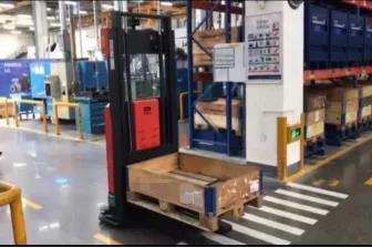 窄通道三向AGV外,在一些不需要高位存儲的場景,AGV廠商們與傳統的叉車廠商合作,通過對車體小型化、輕量化的設計,減小車體的轉彎半徑,推出了窄通道前移堆垛AGV,這類產品的舉升高度一般在1.6m左右,工作通道在2m左右。主要面向線邊運輸、低位上料、倉儲管理等場景應用。
