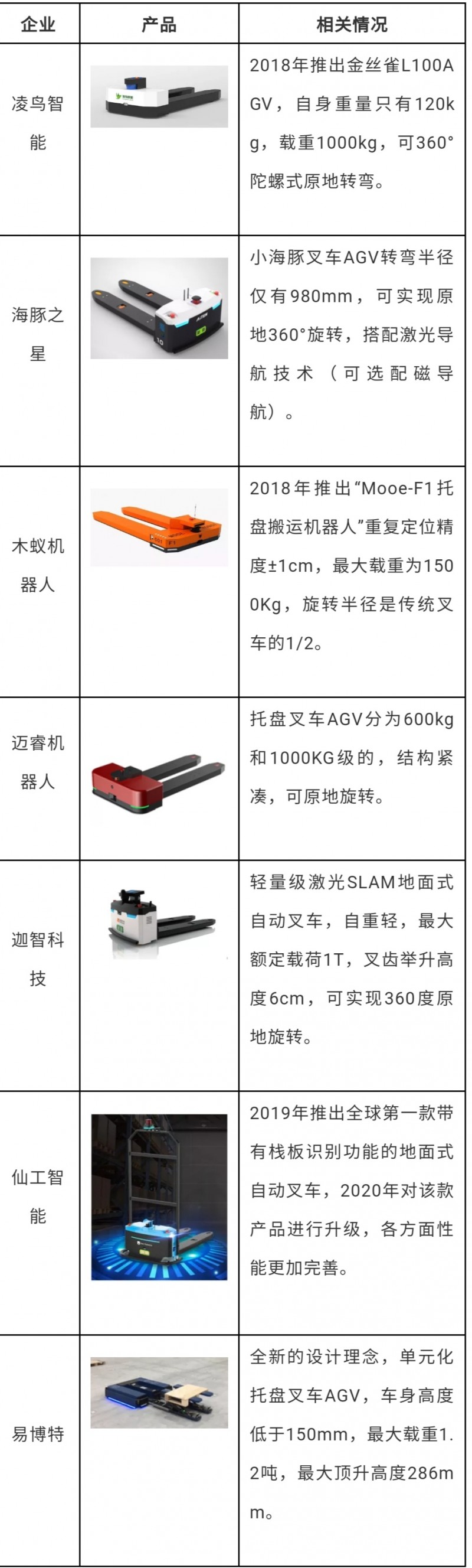 表:國內部分緊湊型托盤叉車AGV廠商