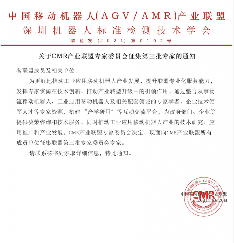 核心提示:中國移動機(jī)器人(AGV/AMR)產(chǎn)業(yè)聯(lián)盟專家委員會征集第三批專家的通知
