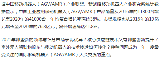 規(guī)模:500人論壇時(shí)間:2021年10月27日 9:00~17:00論壇地點(diǎn):上海新國(guó)際博覽中心·內(nèi)廣場(chǎng)論壇區(qū)(OW2館)參加對(duì)象:國(guó)內(nèi)外AGV/AMR機(jī)器人本體廠商、產(chǎn)業(yè)鏈零配件廠商、智能物流系統(tǒng)集成商、自動(dòng)化集成商、AGV機(jī)器人應(yīng)用商、科研單位、專家學(xué)者等。