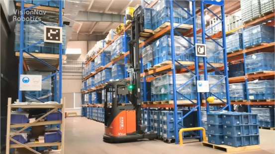 未來機(jī)器人前移式無人叉車最大舉升為9.4米,叉臂根部安裝了感知模塊,可以對橫梁狀況、庫位占用情況進(jìn)行安全檢測,為后續(xù)入庫作業(yè)提供信息輸入。且具備自適應(yīng)模塊,可以很好地滿足多次重復(fù)精準(zhǔn)叉取需求,提高作業(yè)的安全系數(shù)。同時(shí)其機(jī)器人管理系統(tǒng)可以對接自動門,當(dāng)無人叉車行駛到卷閘門附近時(shí),系統(tǒng)提前發(fā)出指令到卷閘門,節(jié)省了人工操作的時(shí)間,保障物流通暢。