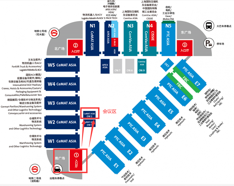 會議地點:上海新國際博覽中心·內廣場OW2館(南廣場1號入口廳進比較方便,見下圖)