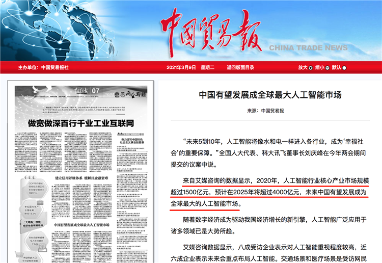 以人工智能為例,中國作為制造業(yè)大國,為其提供了豐富的應(yīng)用場景。據(jù)艾媒咨詢數(shù)據(jù):2020年人工智能行業(yè)核心產(chǎn)業(yè)市場規(guī)模將超過1500億元,預(yù)計在2025年將超過4000億元,中國人工智能產(chǎn)業(yè)在各方的共同推動下進入爆發(fā)式增長階段,市場發(fā)展?jié)摿薮螅磥碇袊型l(fā)展為全球最大的人工智能市場。