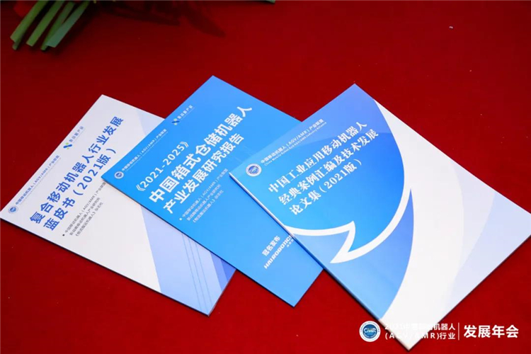 會議同期共發布了三份行業內參資料,包括《中國工業應用移動機器人經典案例匯編與技術發展論文集(2021版)》、《2021-2025中國箱式倉儲機器人產業發展研究報告》、《復合移動機器人行業發展藍皮書(2021版)》。