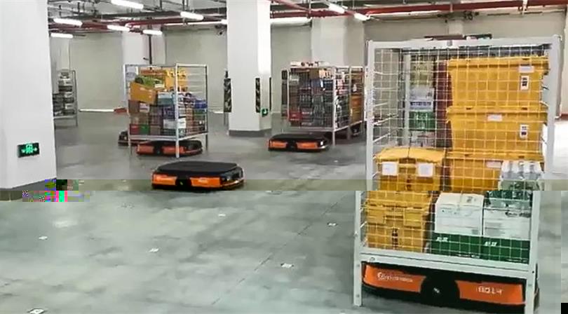 中百物流江夏倉于2020年啟動智慧工廠建設,投入使用潛伏AMR(移動機器人)111臺,實現了2、3、4樓庫區C類品貨到人揀選,1樓B、C類商品合單后集貨、發運全流程由AMR轉運,大大降低了工人揀選的難度和勞動強度,節省了人力成本。