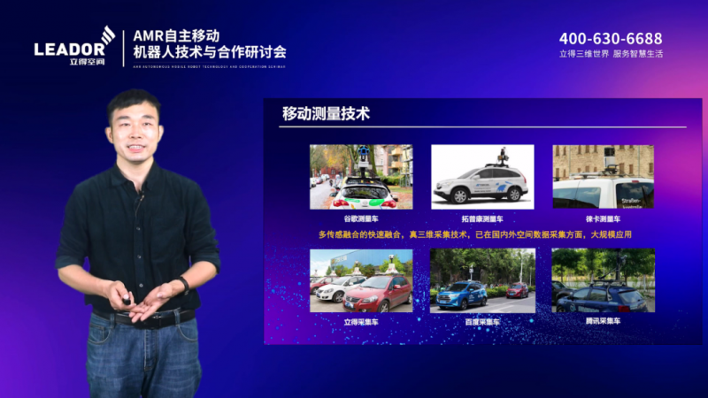 立得空間董事長郭晟在研討會上致辭并發表演講。他介紹說,“立得空間成立23年來基于移動測量、慣性導航、高精地圖、時空大數據等先進技術推動相關產業變革。近年來,立得空間與機器人廠商、OEM生態合作伙伴共同努力,在移動機器人領域獲得了新的突破。通過‘INS(慣性導航系統)+SLAM’算法可以使機器人獲得高精度的定位和導航能力,通過“真圖”數字孿生工廠平臺,對機器人的運行進行模擬仿真,從而使其在實際投用后可以更精準、可靠地完成任務。智能物流、倉儲、安保、應急、特種行業的智能應用相繼落地。”