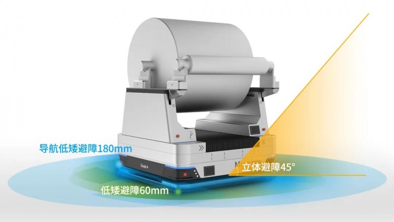 極智嘉取得專利認證的萬向腳輪設計,加入擺臂機構和彈簧獨立懸掛系統,實現緩沖減震的作用,同時不影響萬向輪的自由旋轉。能支持雙舉升機器人在搬運大負載卷料,遠距離行走時,能持續保證穩定、靈活。