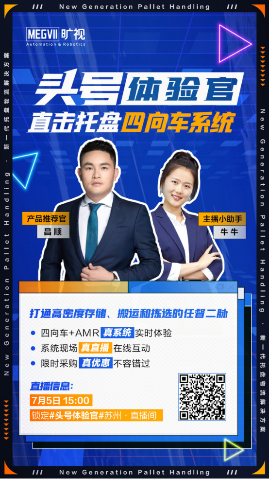 鎖定7月5日15:00,曠視托盤四向車系統(tǒng)“頭號體驗官”直播活動,曠視物流業(yè)務(wù)事業(yè)部產(chǎn)品業(yè)務(wù)負責(zé)人程昌順,將與特邀四向車系統(tǒng)用戶代表一起,為你一一解答。
